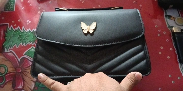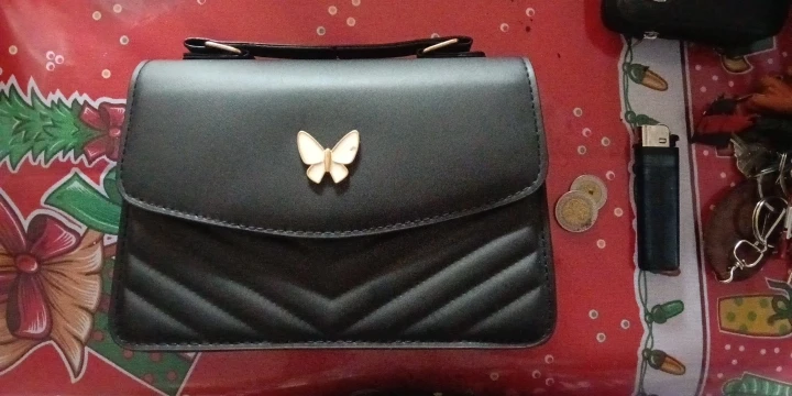 Le sac est magnifique, il est arrivé bien protégé dans sa pochette, incluant la bandoulière pour le porter en bandoulière. Malheureusement, il est arrivé un peu abîmé à cause du papillon comme on peut le voir sur la photo, mais cela n'affecte pas beaucoup, il reste beau. Il mesure environ 20 à 25 cm de long et environ 15 cm de haut.